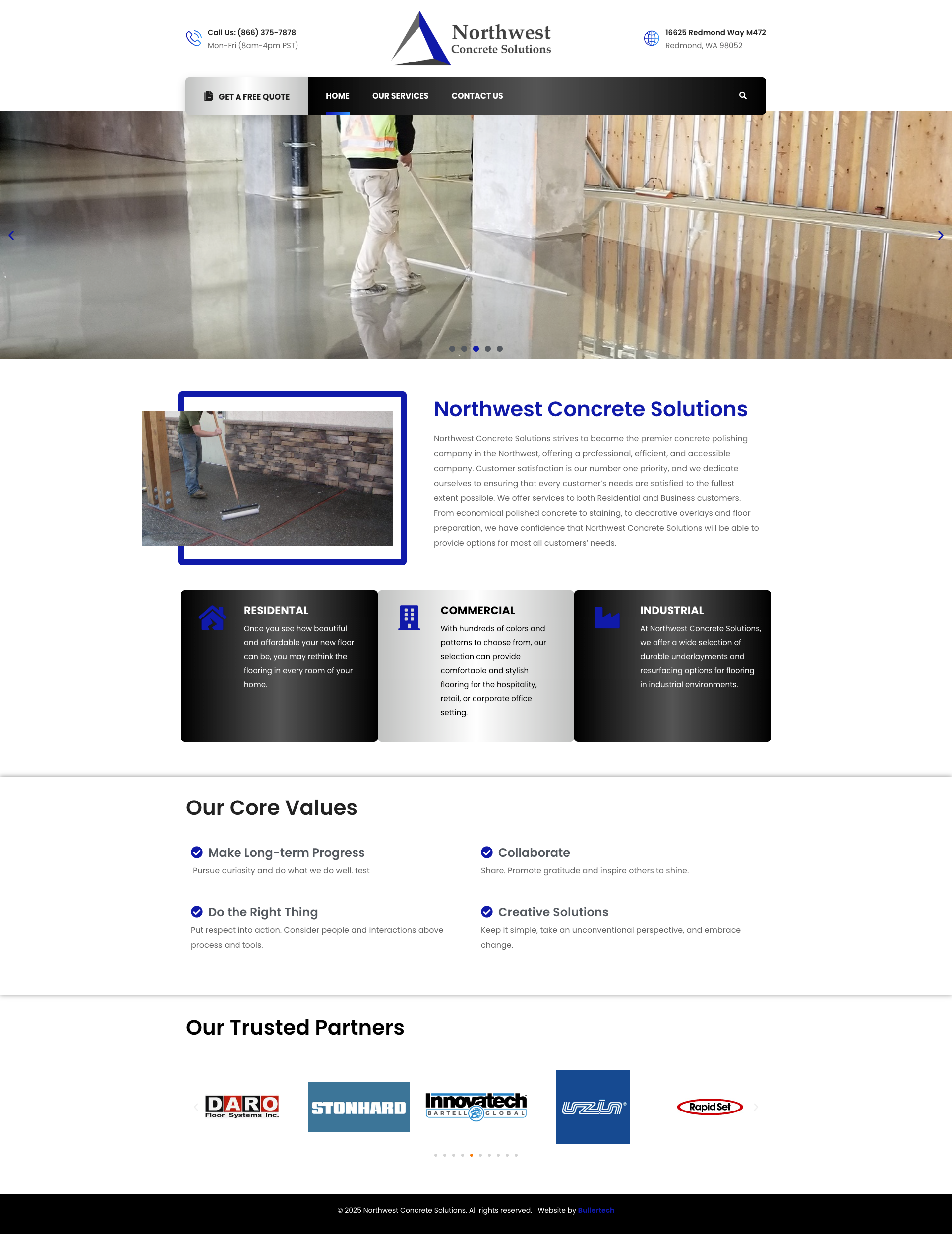 We supported Northwest Concrete Solutions with a series of website improvements focused on elevating their online presence and usability. The project included a minor visual refresh to create a cleaner, more cohesive look, integration of the Elementor website builder for easier content management, and the resolution of existing bugs to improve overall site performance and reliability.